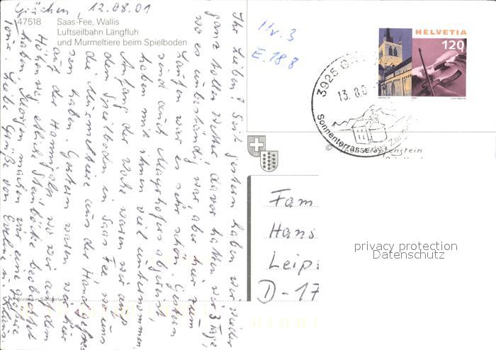 alte Postkarte Seilbahn Laenghfluh Saas-Fee Murmeltiere Spielboden postalisch gelaufen Erhaltung siehe scans