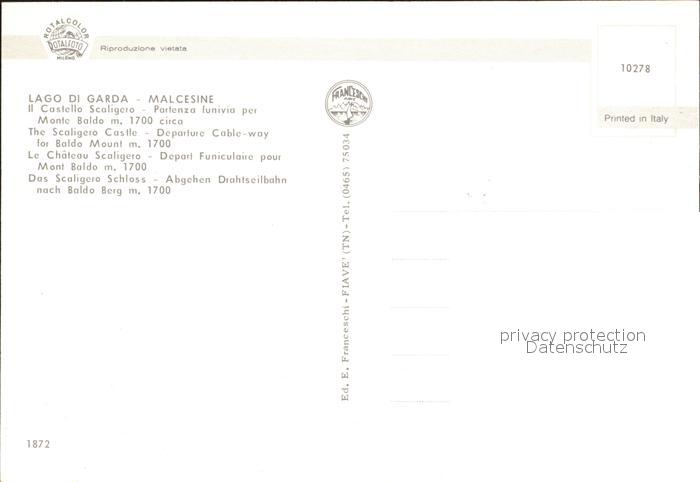 Seilbahn Lago di Garda-Malcesine Castello Scaligero postalisch nicht gelaufen Erhaltung siehe scans