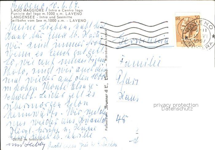 alte Postkarte Seilbahn Lago Maggiore Laveno Langensee postalisch gelaufen