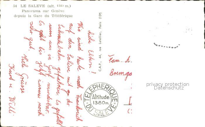 alte Postkarte Seilbahn Le Saleve Geneve postalisch gelaufen Erhaltung siehe scans