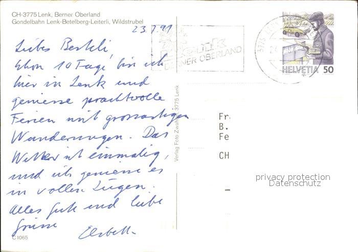 alte Postkarte Seilbahn Lenk-Betelberg-Leiterli Wildstrubel Lenk postalisch gelaufen Erhaltung siehe scans