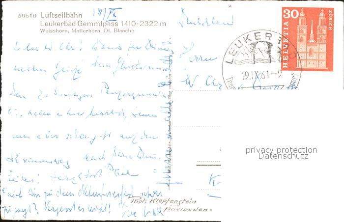 alte Postkarte Seilbahn Leukerbad Gemmipass Weisshorn Matterhorn Dt. Blanche postalisch gelaufen Erhaltung siehe scans