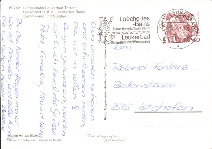 71430427 Seilbahn Leukerbad-Torrent Gemmiwand Steghorn KatCode 22040000000400