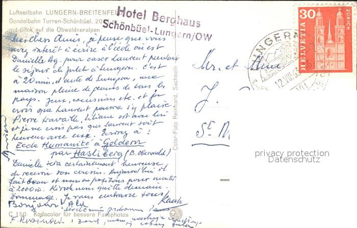 alte Postkarte Seilbahn Lungern-Breitenfeld Obwaldneralpen postalisch gelaufen Erhaltung siehe scans