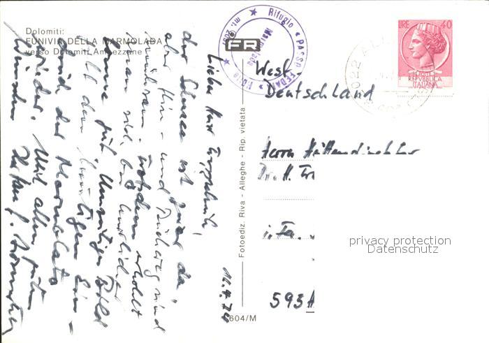 alte Postkarte Seilbahn Marmolada Dolomiti Ampezzane postalisch gelaufen Erhaltung siehe scans