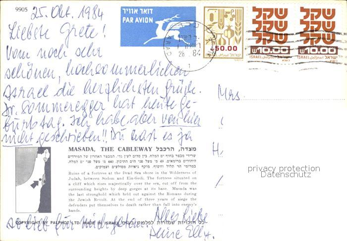 alte Postkarte Seilbahn Masada Cableway postalisch gelaufen Erhaltung siehe scans