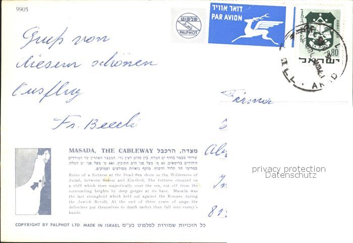 alte Postkarte Seilbahn Masada Israel postalisch gelaufen Erhaltung siehe scans