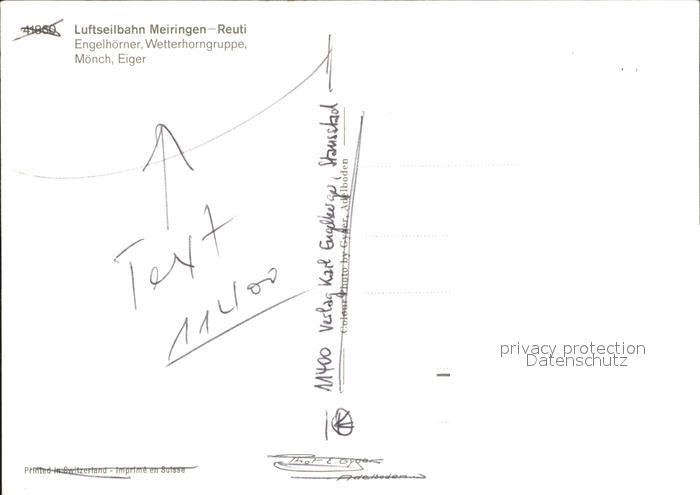 Seilbahn Meiringen-Reuti Engelhoerner Wetterhorngruppe Moench Eiger postalisch nicht gelaufen Erhaltung siehe scans