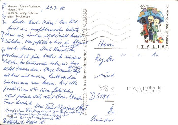 alte Postkarte Seilbahn Merano Funivia Avelengo Texelgruppe postalisch gelaufen Erhaltung siehe scans