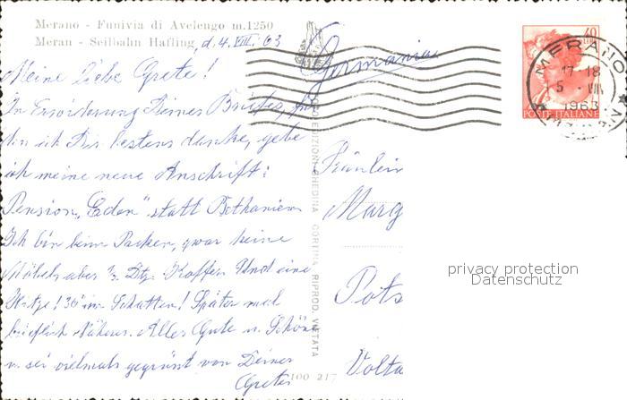 alte Postkarte Seilbahn Merano Funivia di Avelengo postalisch gelaufen Erhaltung siehe scans