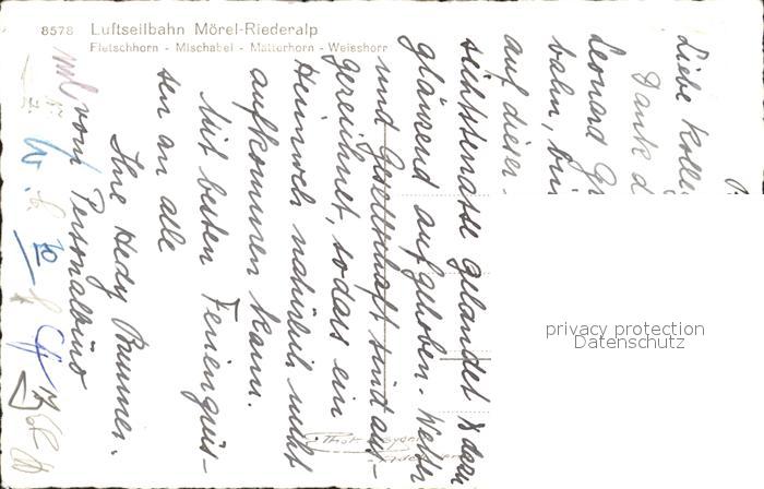 Seilbahn Moerel-Riederalp Fletschhorn Mischabel Matterhorn Weisshorn postalisch nicht gelaufen Erhaltung siehe scans