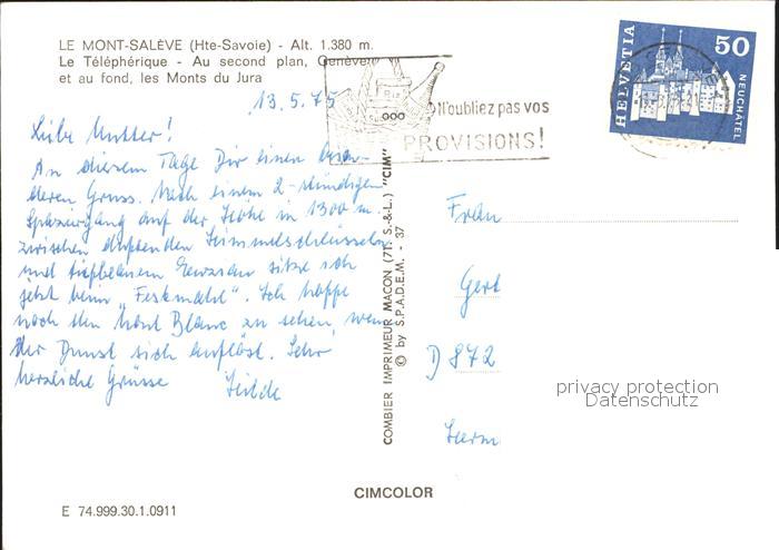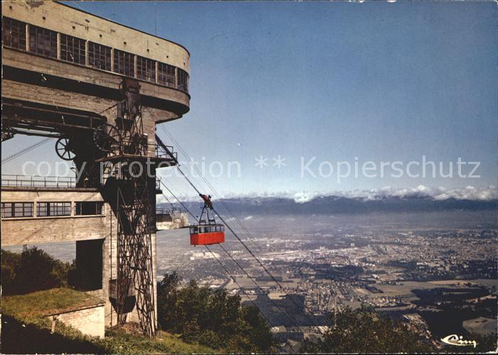 alte Postkarte Seilbahn Mont-Saleve Geneve Monts du Jura postalisch gelaufen Erhaltung siehe scans