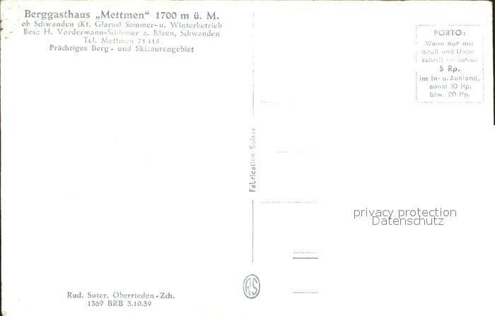 Seilbahn Niedernthal-Mettmen Glaernisch postalisch nicht gelaufen Erhaltung siehe scans