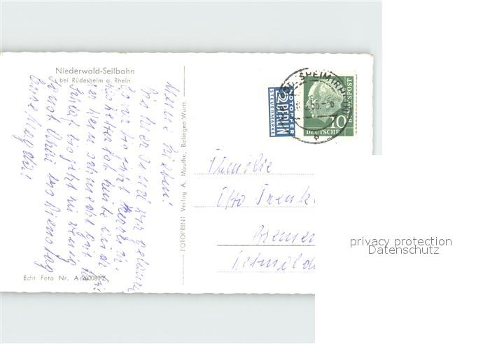 alte Postkarte Seilbahn Niederwald Ruedesheim am Rhein postalisch gelaufen Erhaltung siehe scans