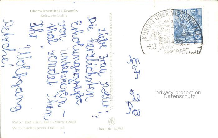 alte Postkarte Seilbahn Oberwiesenthal postalisch gelaufen