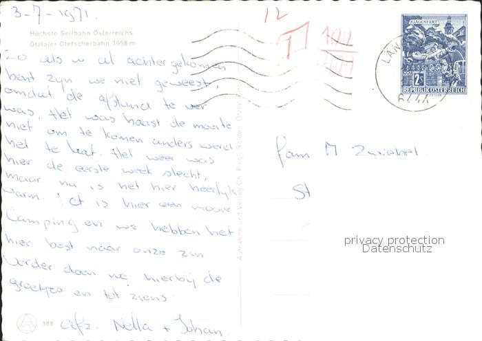 alte Postkarte Seilbahn oetztal postalisch gelaufen Erhaltung siehe scans