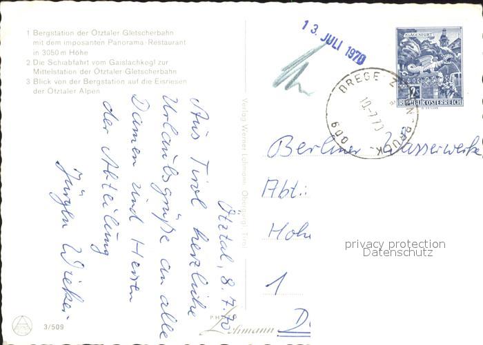 alte Postkarte Seilbahn oetztaler Gletscherbahn Bergstation Panorama-Restaurant postalisch gelaufen Erhaltung siehe scans