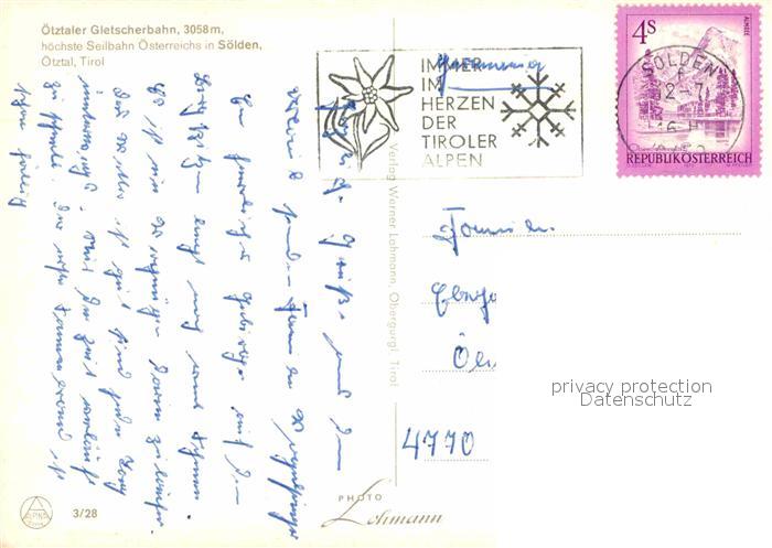 alte Postkarte Seilbahn oetztaler Gletscherbahn Soelden oetztal postalisch gelaufen Erhaltung siehe scans [PaolaD17]