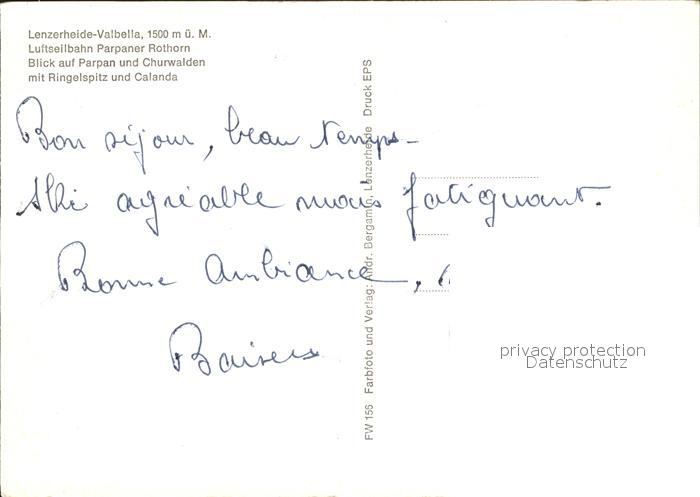 Seilbahn Parpaner Rothorn Lenzerheide-Valbella postalisch nicht gelaufen Erhaltung siehe scans