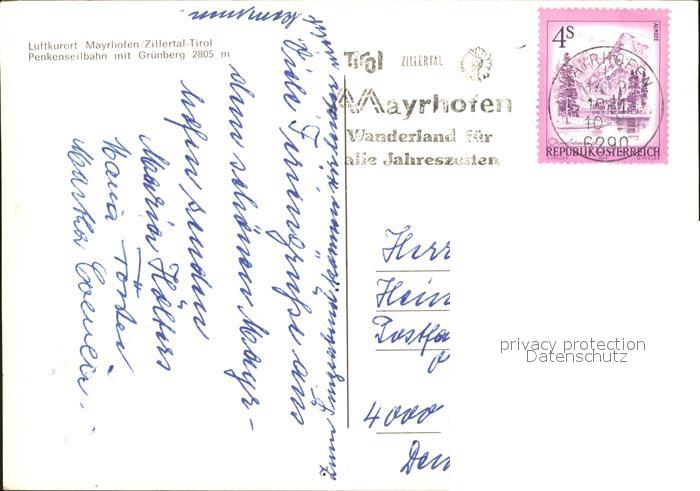 alte Postkarte Seilbahn Penken Gruenberg Mayrhofen Zillertal postalisch gelaufen Erhaltung siehe scans