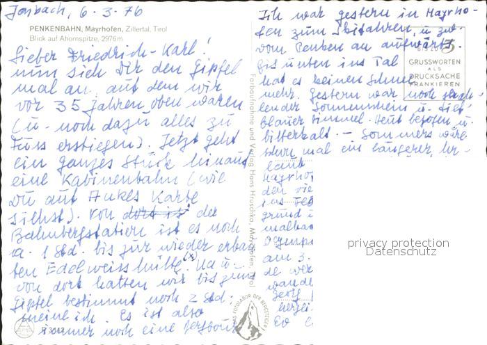Seilbahn Penken Mayrhofen Zillertal Ahornspitze postalisch nicht gelaufen Erhaltung siehe scans