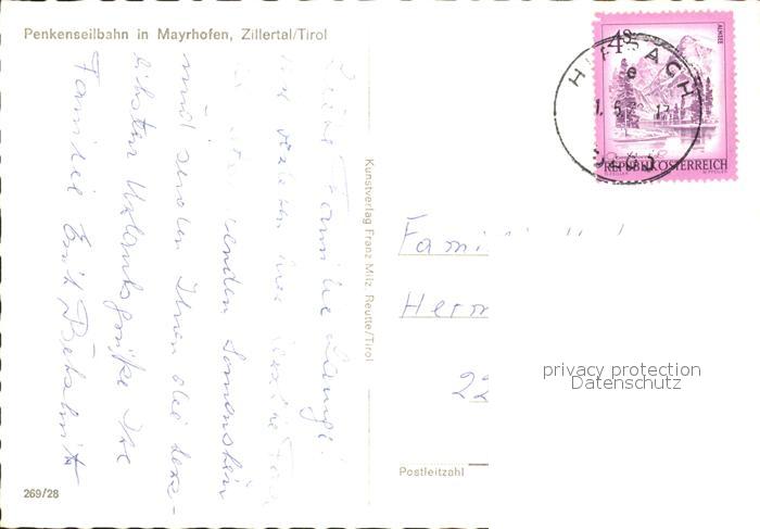 alte Postkarte Seilbahn Penken Mayrhofen Zillertal Tirol postalisch gelaufen Erhaltung siehe scans