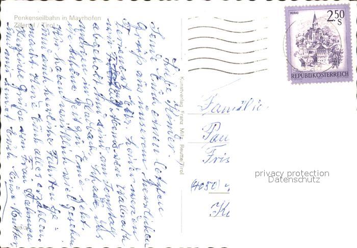 alte Postkarte Seilbahn Penken Mayrhofen Zillertal Tirol postalisch gelaufen Erhaltung siehe scans