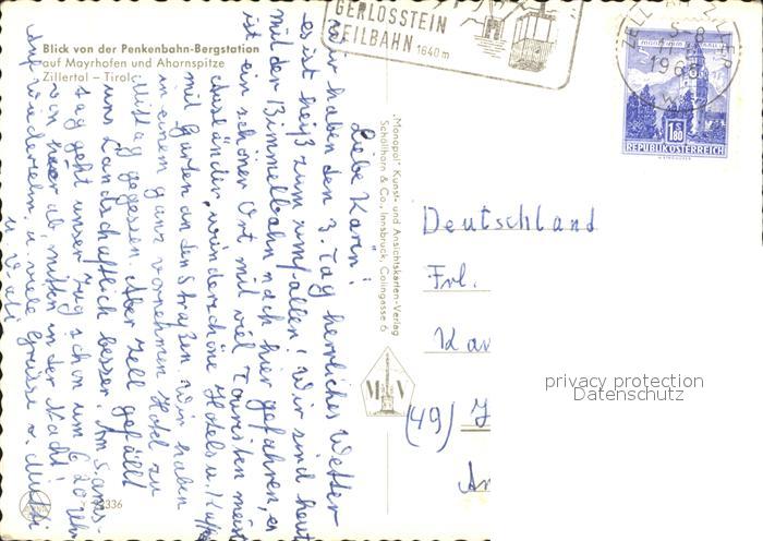 alte Postkarte Seilbahn Penkenbahn-Bergstation Mayrhofen Ahornspitze Zillertal postalisch gelaufen Erhaltung siehe scans