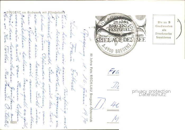 alte Postkarte Seilbahn Pfaender Bregenz am Bodensee postalisch gelaufen Erhaltung siehe scans
