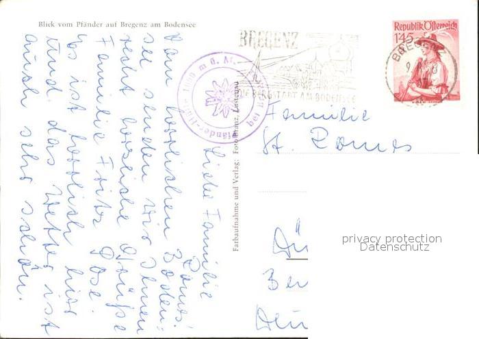 alte Postkarte Seilbahn Pfaender Bregenz am Bodensee postalisch gelaufen Erhaltung siehe scans