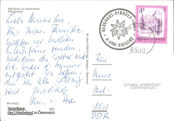 alte Postkarte Seilbahn Pfaenderbahn Bregenz am Bodensee postalisch gelaufen Erhaltung siehe scans