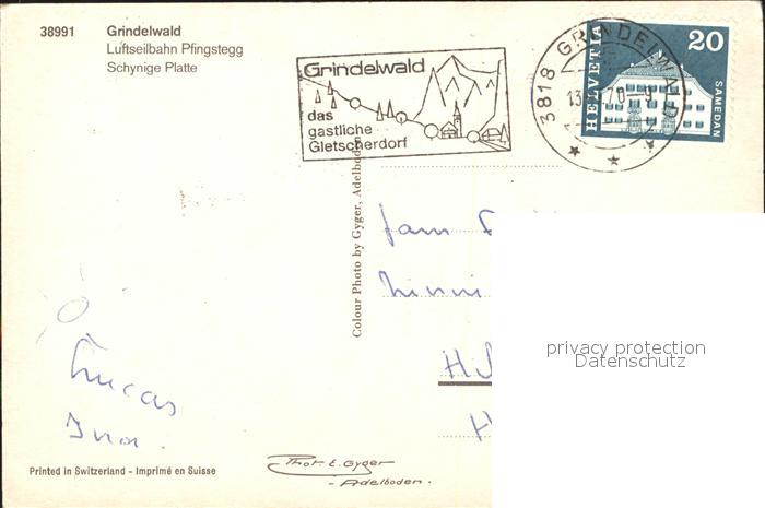 alte Postkarte Seilbahn Pfingstegg Schynige Platte Grindelwald postalisch gelaufen Erhaltung siehe scans
