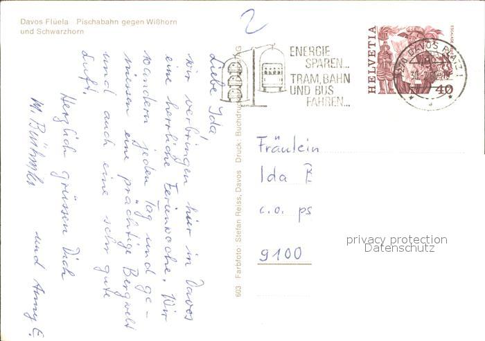 alte Postkarte Seilbahn Pischa Davos Flueela Wisshorn Schwarzhorn postalisch gelaufen Erhaltung siehe scans