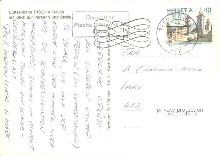 alte Postkarte Seilbahn Pischa Davos Parsenn Strela postalisch gelaufen Erhaltung siehe scans