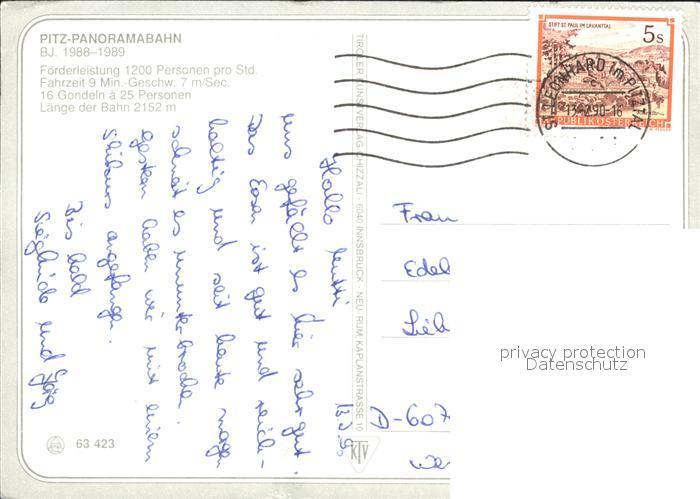 alte Postkarte Seilbahn Pitz-Panoramabahn Pitztal Tirol postalisch gelaufen Erhaltung siehe scans