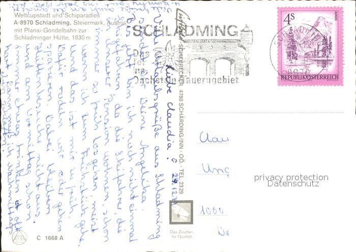 alte Postkarte Seilbahn Planai Schladming Schladminger Huette postalisch gelaufen Erhaltung siehe scans