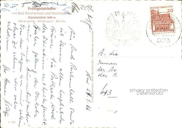 alte Postkarte Seilbahn Predigtstuhlbahn Bad Reichenhall Hochstaufen postalisch gelaufen Erhaltung siehe scans