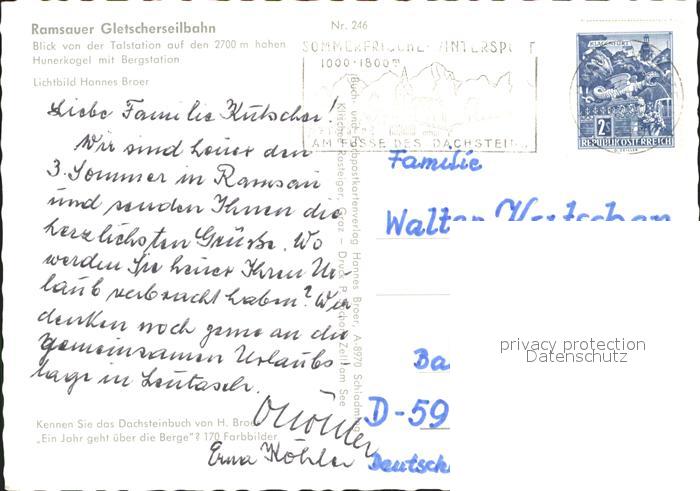 alte Postkarte Seilbahn Ramsauer Gletscherseilbahn Hunerkogel postalisch gelaufen Erhaltung siehe scans