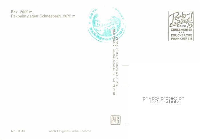 Seilbahn Rax Schneeberg postalisch nicht gelaufen Erhaltung siehe scans [PaolaD17]