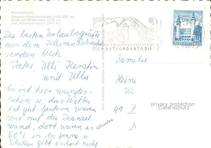 alte Postkarte Seilbahn Riezlern-Kanzelwand Kleinwalsertal Widderstein Hochkuenzelspitze postalisch gelaufen Erhaltung siehe scans