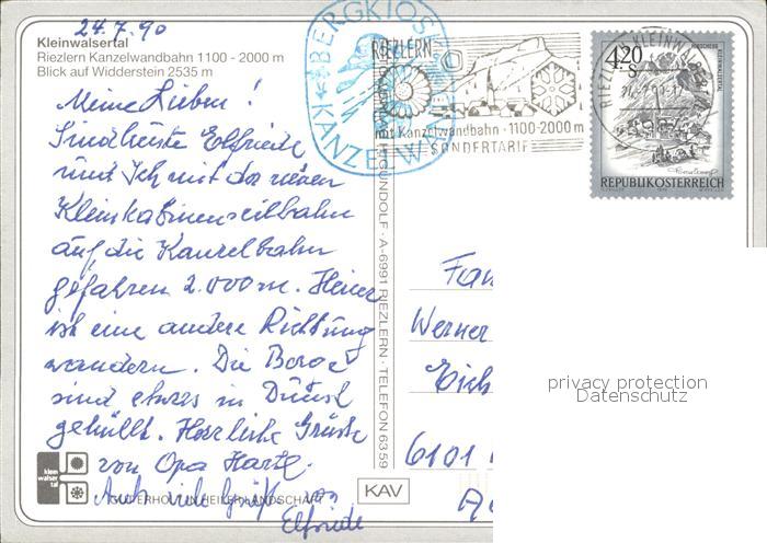 alte Postkarte Seilbahn Riezlern-Kanzelwand Kleinwalsertal Widderstein postalisch gelaufen Erhaltung siehe scans