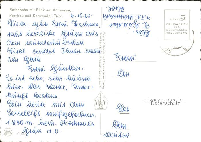 alte Postkarte Seilbahn Rofan Achensee Pertisau Karwendel postalisch gelaufen Erhaltung siehe scans