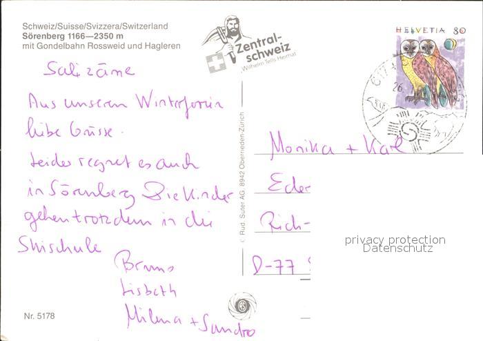 alte Postkarte Seilbahn Rossweid Hagleren Soerenberg postalisch gelaufen Erhaltung siehe scans