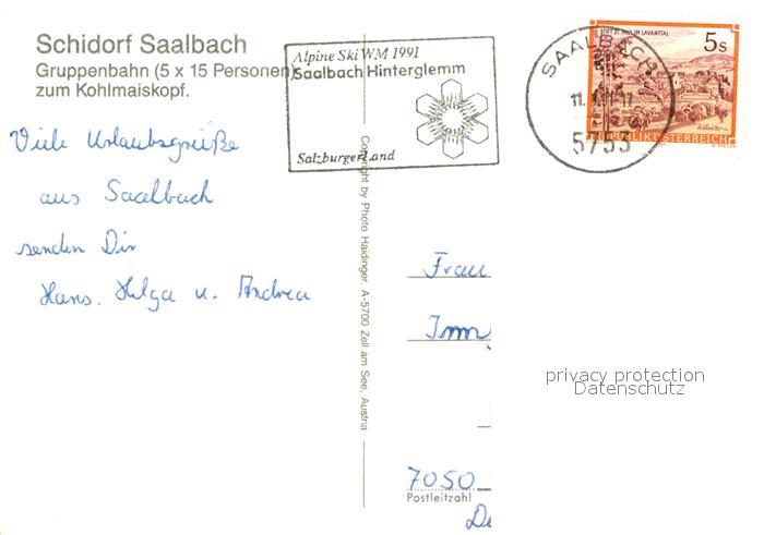alte Postkarte Seilbahn Saalbach Hinterglemm Gruppenbahn Kohlmaiskopf postalisch gelaufen Erhaltung siehe scans [PaolaD17]