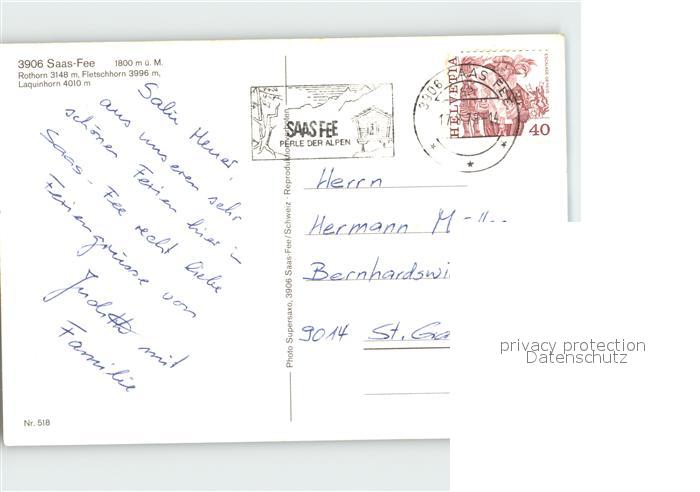 alte Postkarte Seilbahn Saas-Fee Rothorn Fletschhorn Laquinhorn postalisch gelaufen Erhaltung siehe scans