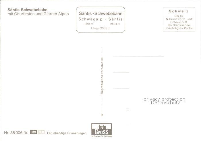 Seilbahn Saentis Churfirsten Glarner Alpen postalisch nicht gelaufen Erhaltung siehe scans
