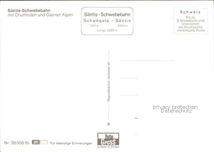 Seilbahn Saentis Churfirsten Glarner Alpen Schwaegalpen postalisch nicht gelaufen Erhaltung siehe scans