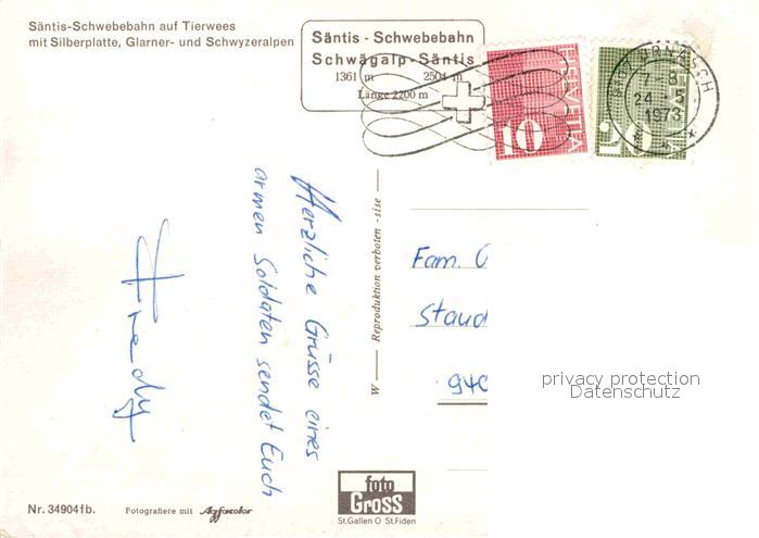 72680836 Seilbahn Säntis Tierwees Silberplatte Glarner- und Schwyzeralpen KatCode 22040000000400