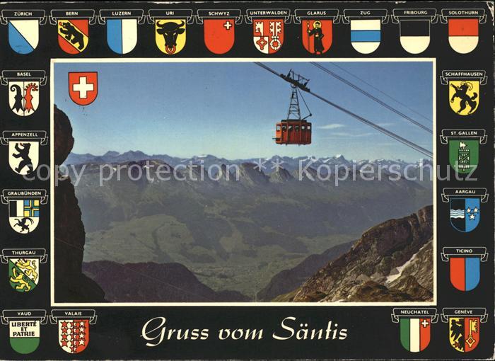 alte Postkarte Seilbahn Saentis Wappen Kantone postalisch gelaufen Erhaltung siehe scans