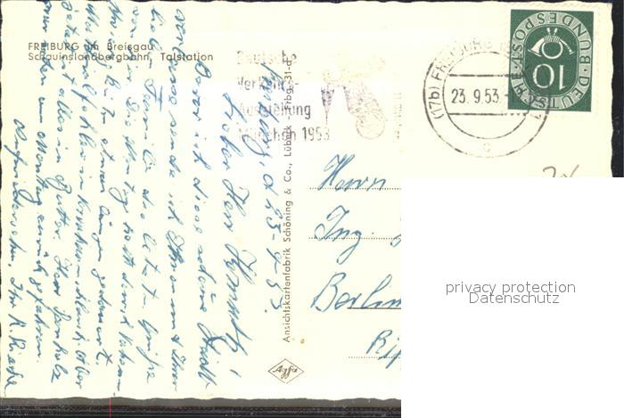 alte Postkarte Seilbahn Schauinsland Talstation Freiburg im Breisgau postalisch gelaufen Erhaltung siehe scans